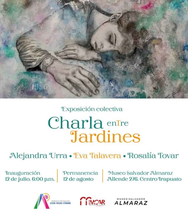 La primera exposición es ‘Charla entre Jardines’ de un colectivo de artistas compuesto por Alejandra Urra, Eva Talavera y Rosalía Tovar, una muestra multidisciplinaria de 27 obras que incluyen pintura, instalación, artefactos artísticos, encausto y acuarela.